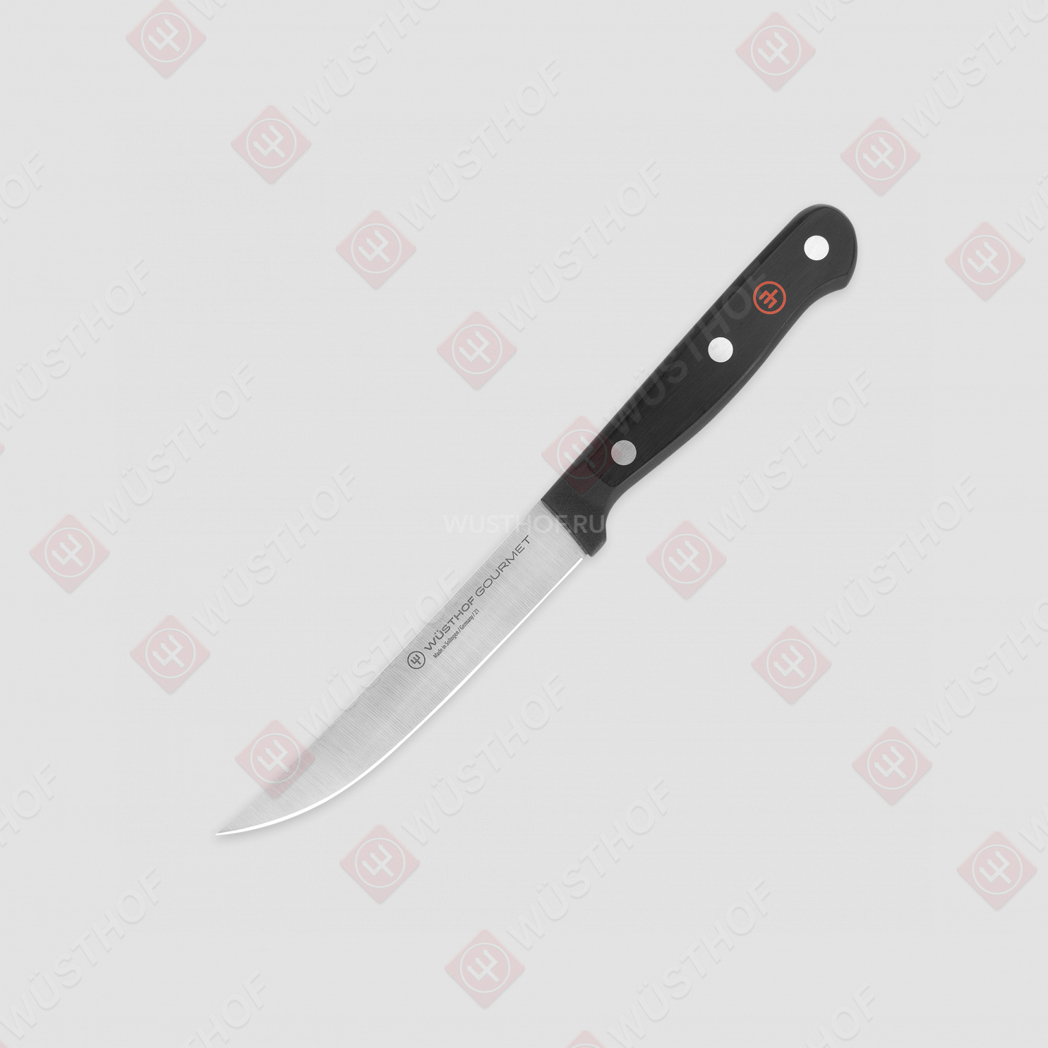 Клинки ножей серии Gourmet имеют двухстороннюю симметричную заточку режущей кромки, закаленной до 58 единиц по шкале Роквелла. Лезвия для ножей Gourmet изготавливаются из цельных кусков прокатной стали с помощью новейших лазерных технологий.