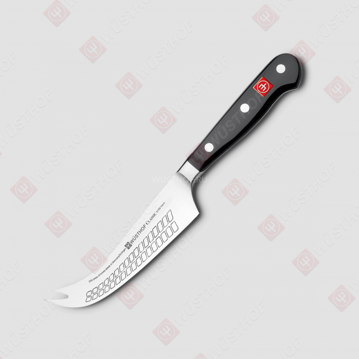 Ножи из серии Classic оснащены клинками из кованой молибден-ванадиевой стали и рукоятьми из ударопрочного синтетического материала, закрепленного на хвостовике тремя мощными заклепками. Двухсторонняя симметричная заточка закаленной до 58 единиц по Роквеллу режущей кромки каждого лезвия обеспечивает длительный безупречный рез, а удобные рукоятки помогут избежать усталости и использовать режущие кухонные инструменты максимально эффективно.