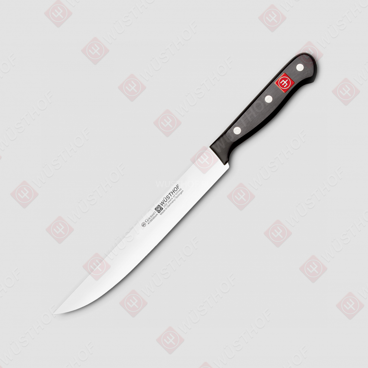 В серию кухонных инструментов Gourmet вошли ножи с клинками из прокатной высоколегированной стали X50 CrMoV15 и рукоятьми из ударопрочного синтетического материала. Рукояти ножей имеют эргономичную форму, большинство моделей – расширение в виде упора на краю рукояти у лезвия и развитую заднюю головку. К хвостовику клинка рукоять крепится двумя или тремя мощными заклепками.