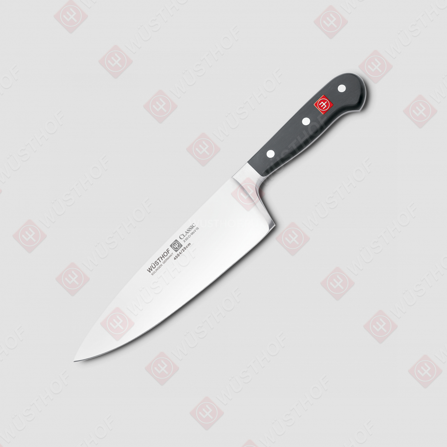 Ножи из серии Classic оснащены клинками из кованой молибден-ванадиевой стали и рукоятьми из ударопрочного синтетического материала, закрепленного на хвостовике тремя мощными заклепками. Двухсторонняя симметричная заточка закаленной до 58 единиц по Роквеллу режущей кромки каждого лезвия обеспечивает длительный безупречный рез, а удобные рукоятки помогут избежать усталости и использовать режущие кухонные инструменты максимально эффективно.