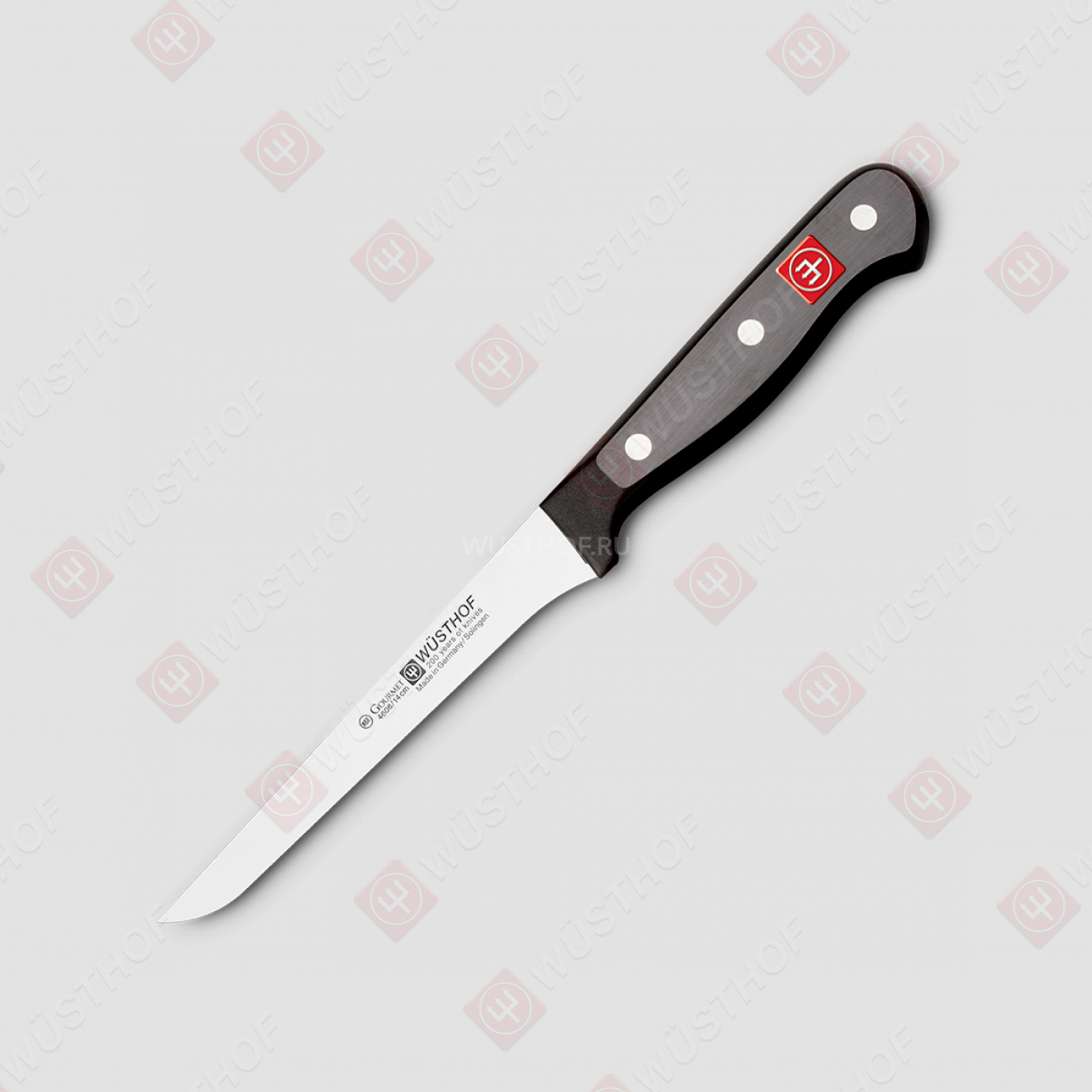 Клинки ножей серии Gourmet имеют двухстороннюю симметричную заточку режущей кромки, закаленной до 58 единиц по шкале Роквелла. Лезвия для ножей Gourmet изготавливаются из цельных кусков прокатной стали с помощью новейших лазерных технологий.