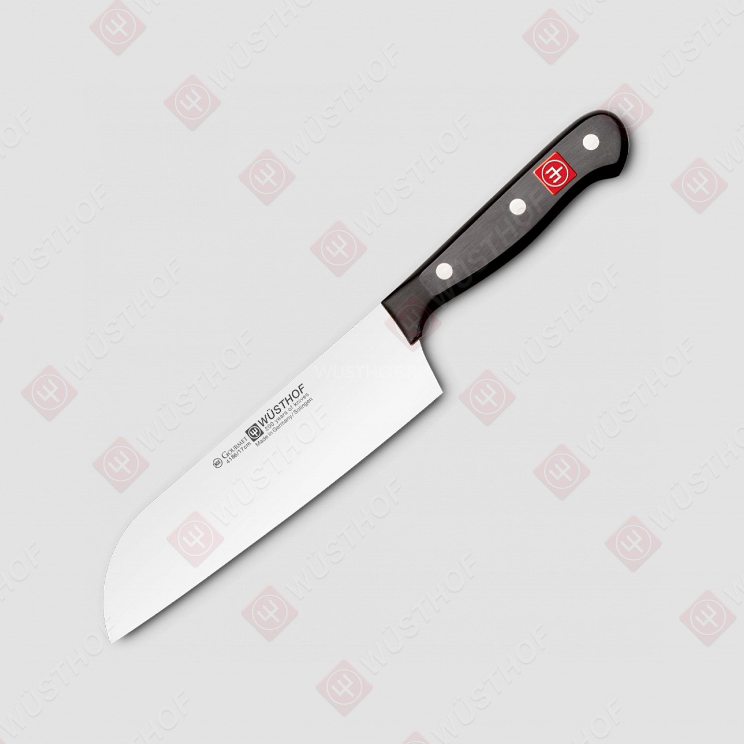 Клинки ножей серии Gourmet имеют двухстороннюю симметричную заточку режущей кромки, закаленной до 58 единиц по шкале Роквелла. Лезвия для ножей Gourmet изготавливаются из цельных кусков прокатной стали с помощью новейших лазерных технологий.
