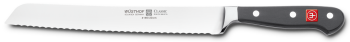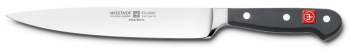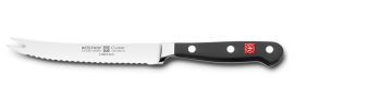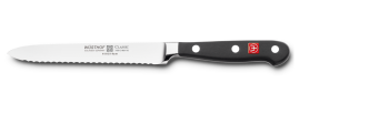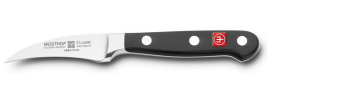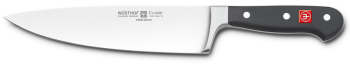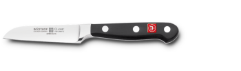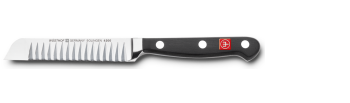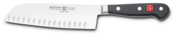 Поварской нож Santoku – большой нож-«шеф» с клинком, разработанным в Азии. Широкое лезвие этого ножа и потрясающая острота режущей кромки великолепно подходят для работ по приготовлению суши и сашими. Но также «Сантоку» прекрасно справляется и с иными задачами на кухне, включая тонкую нарезку продуктов. В отличие от «шефа» европейского типа, «Сантоку» оснащен более широким клинком, с опущенным к линии режущей кромки острием. За счет более низкого расположение линии режущей кромки обеспечивается достаточное пространство между пальцами и разделочной доской. Боковые поверхности лезвия ножа «Сантоку» могут иметь поперечные овальные углубления, которые исключают прилипание тонких и мягких ломтиков продуктов к лезвию.