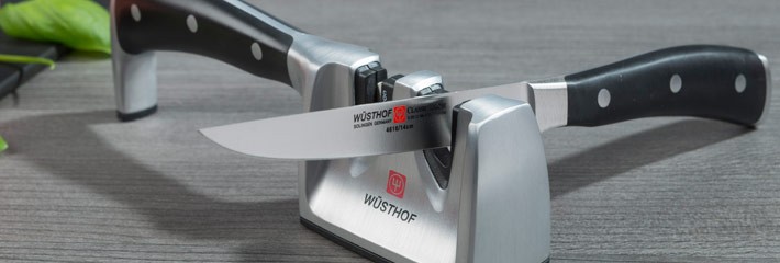 Компания Wuesthof производит отменные механические точилки с керамическими заточными дисками. Они просты в использовании и дают отменный результат!